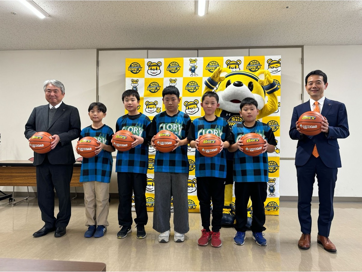 1月12日(日)にブレックスアリーナ宇都宮にて持続可能な開発目標(SDGs)に取り組むプロジェクト「BREX with(ブレックス ウィズ)」の活動の一環として、「宇都宮ブレックス with ニチガス バスケットボール寄贈活動」のバスケットボール寄贈式を実施しました。